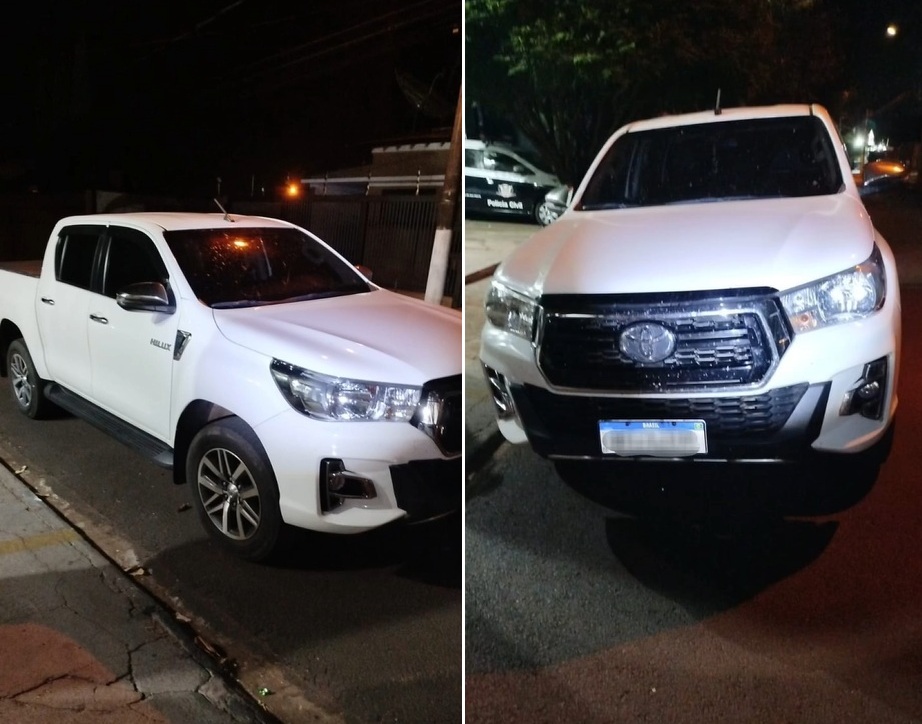 A caminhonete Toyota/Hilux era produto de furto ocorrido em Ariranha/SP, no dia 29 de setembro de 2025.