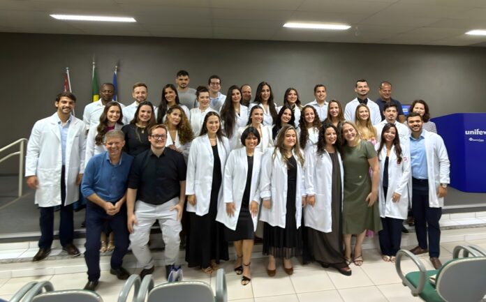 A noite desta quinta-feira (19.fev) foi um marco para a saúde e a educação em Votuporanga. Em uma cerimônia solene, a Santa Casa de Votuporanga e a Unifev celebraram a formatura de 23 novos médicos especialistas. Após anos de dedicação intensa, os profissionais concluíram seus programas sob a orientação de supervisores dedicados: Dra. Amanda Carla Tosta Vieira na Clínica Médica; Dr. Lucas Costa Corgozinho na Cirurgia Geral; Dra. Tatiane Brasil de Souza Pretto em Ginecologia e Obstetrícia; Dr. Jallys Rafael Gonçalves Pessoa em Medicina da Família e Comunidade; Dra. Carla Sidiley Roveri da Silva na Pediatria; e Dra. Luiza Roma Donaire em Radiologia e Diagnóstico por Imagem. Agora, eles encerram um ciclo de transformação para iniciar uma nova jornada de cuidado por todo o país.