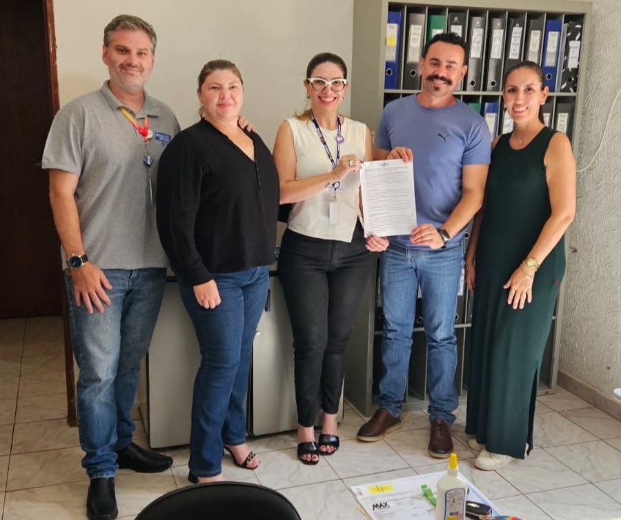 A assinatura ocorreu durante reunião com a presença da agente do Sebrae Aqui no município, Simone Pedrão, do consultor de negócios Guilherme Lui, da analista de negócios Leliane Petrocelli, do secretário municipal de Educação, Flavio Tanganeli, e da diretora da EMEF Profª Elza Rodrigues de Lima, Marielen Durval dos Santos Rocha.