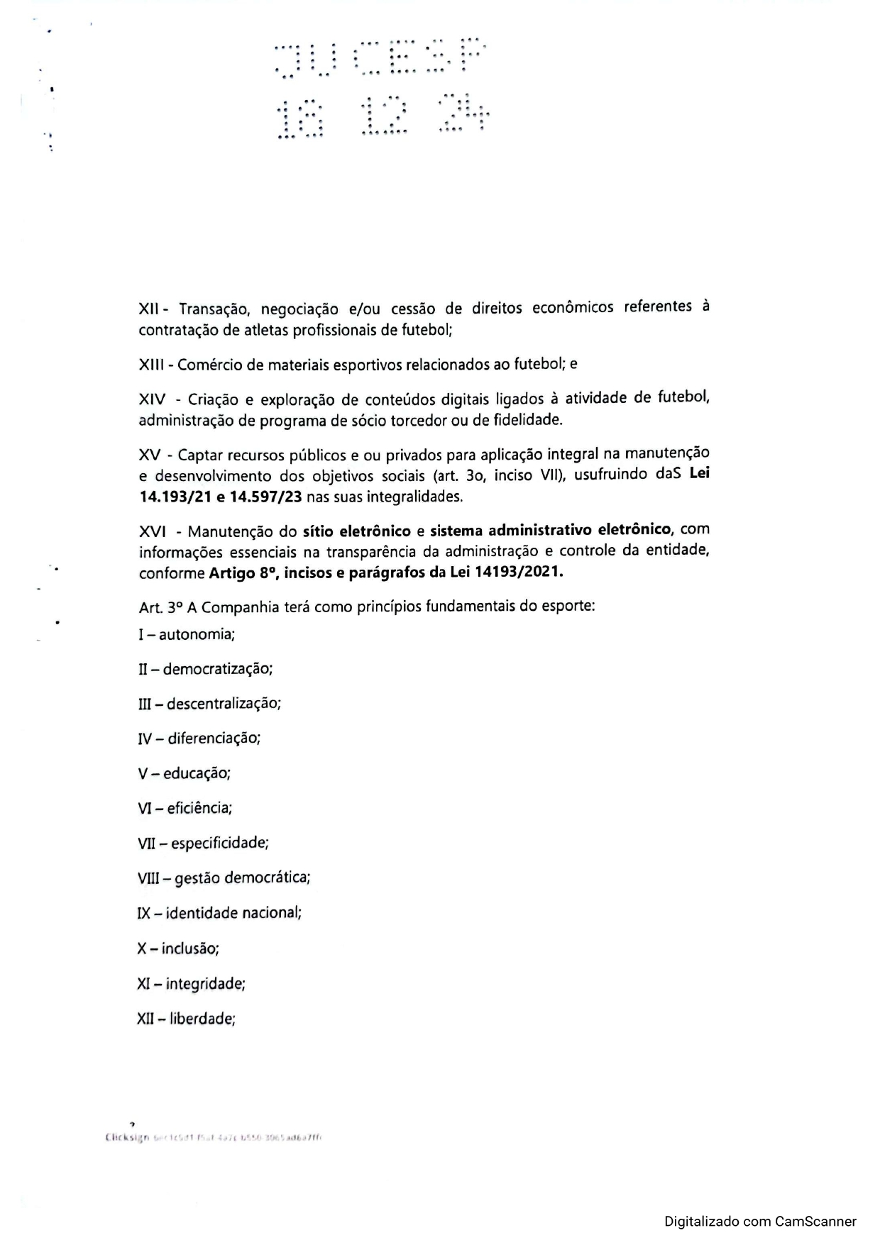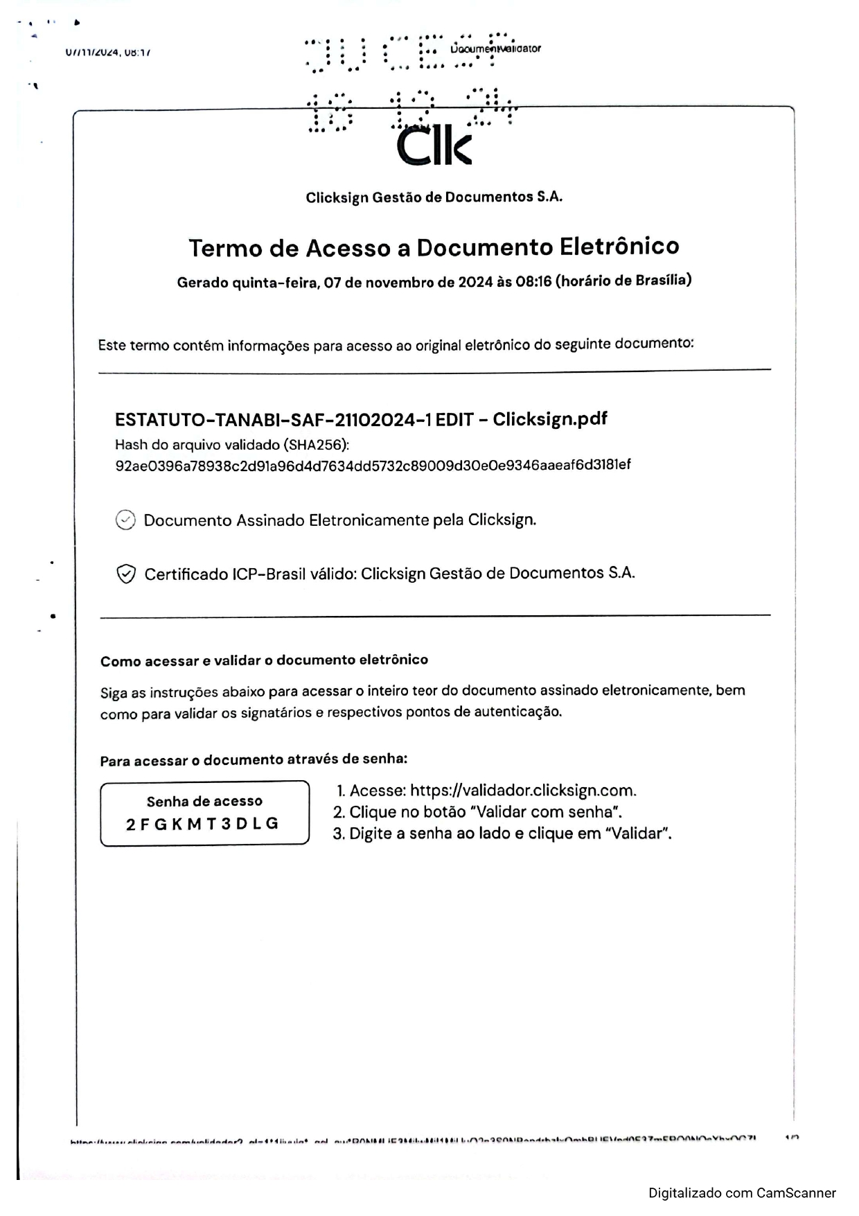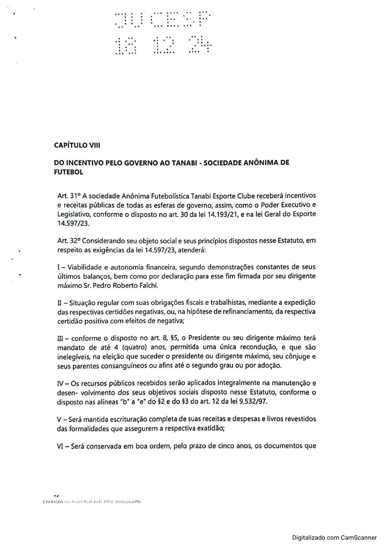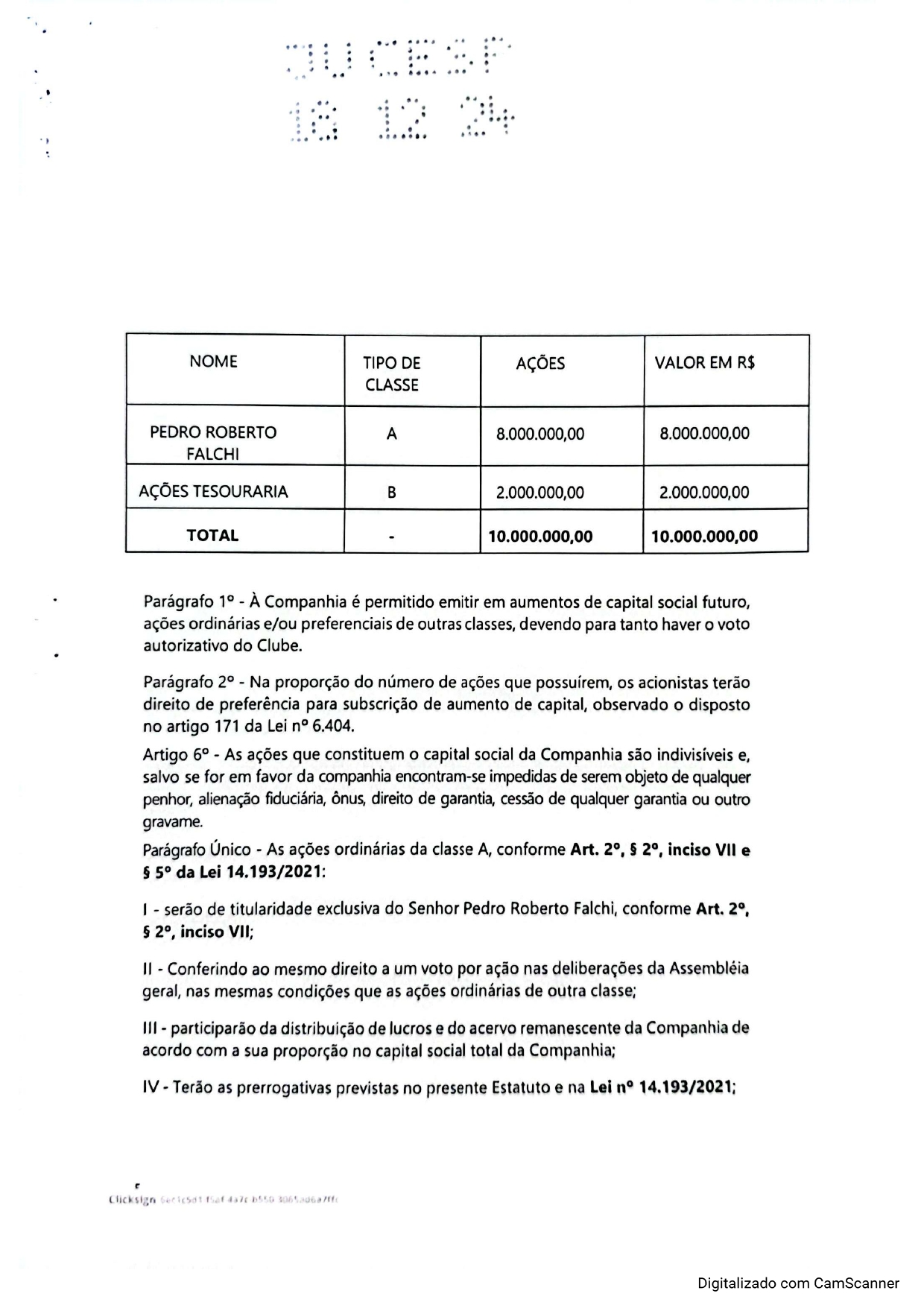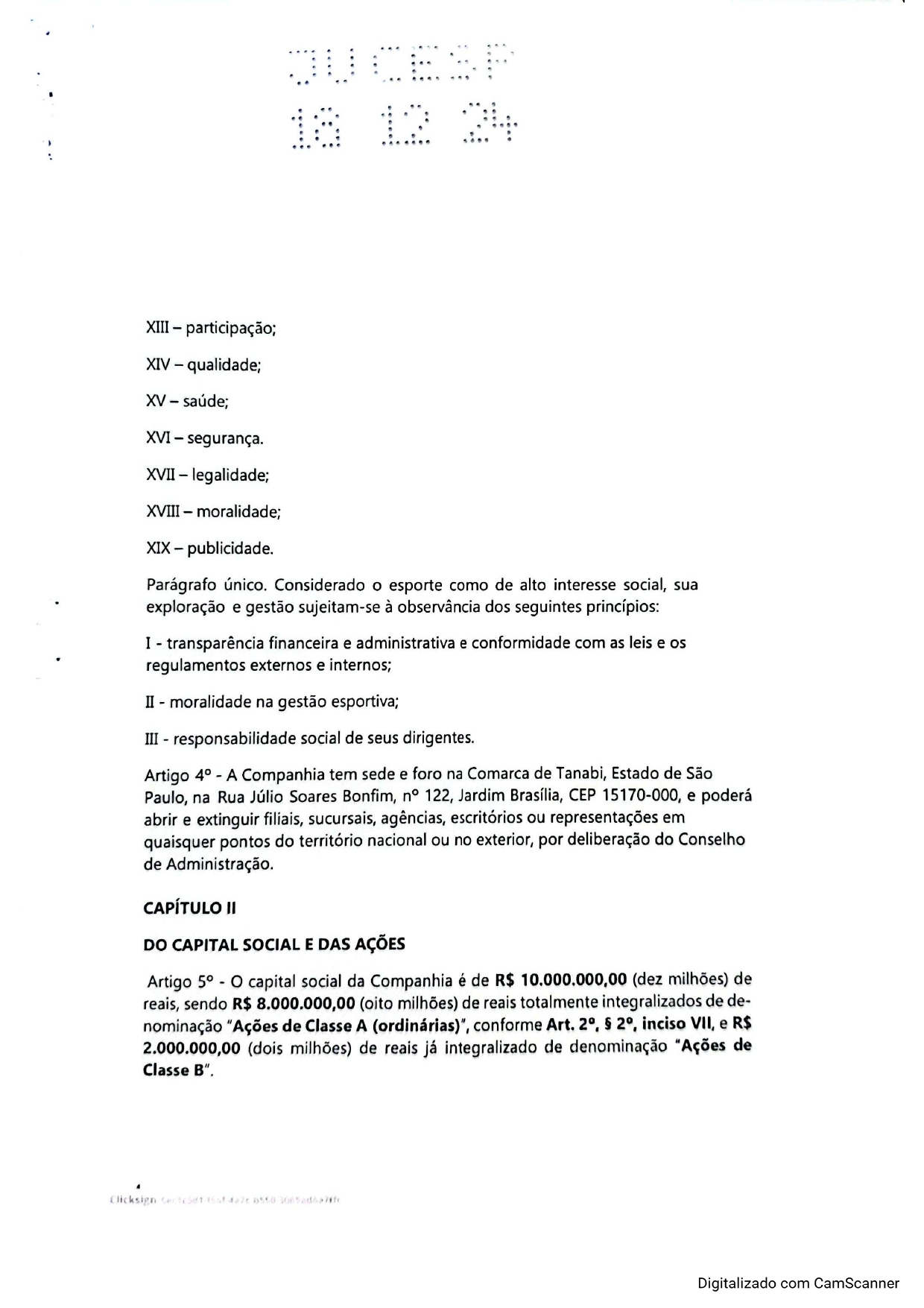 Em Assembleia Geral realizada em 10/08/2022, foi aprovada a transformação do TANABI ESPORTE CLUBE em Sociedade Anônima do Futebol – SAF, nos termos da Lei nº 14.193/2021, bem como a aprovação do Estatuto Social e a eleição da Diretoria, com mandato conforme o Estatuto Social.