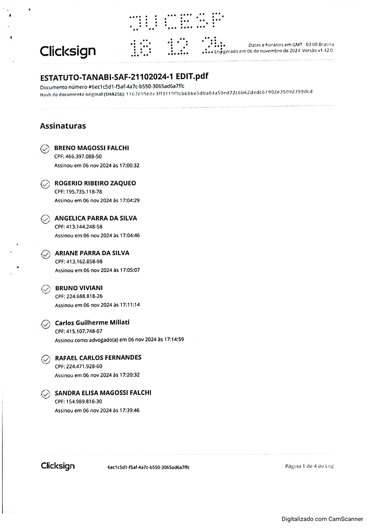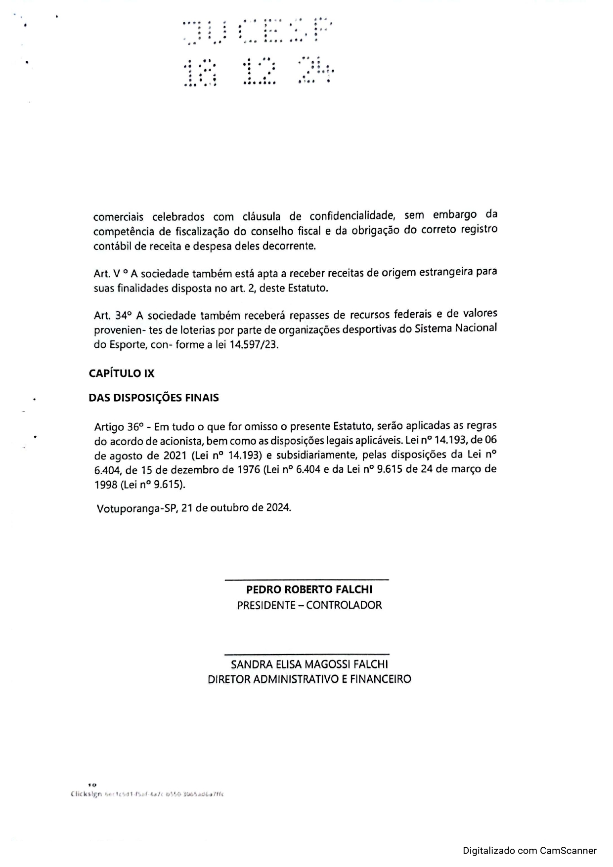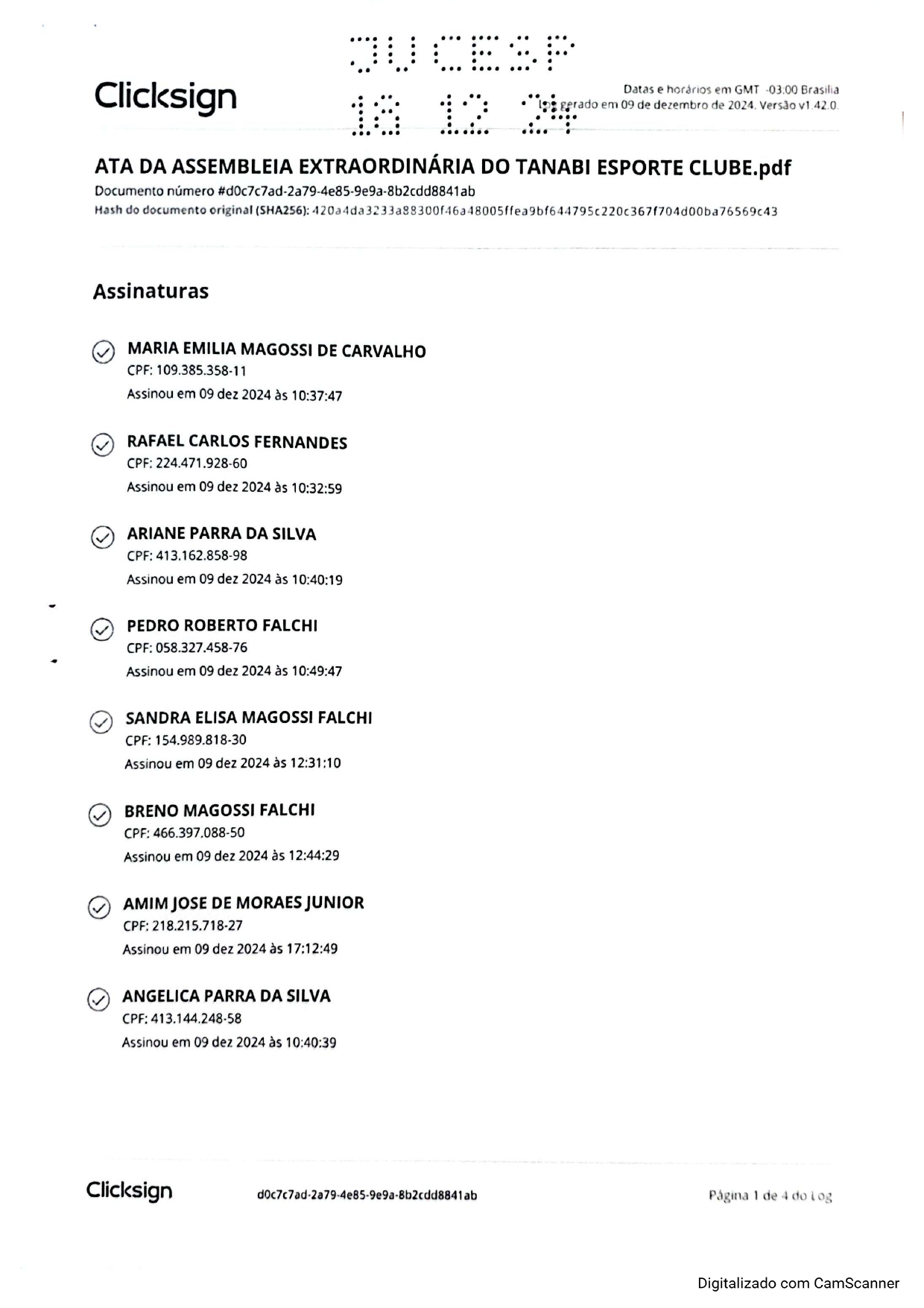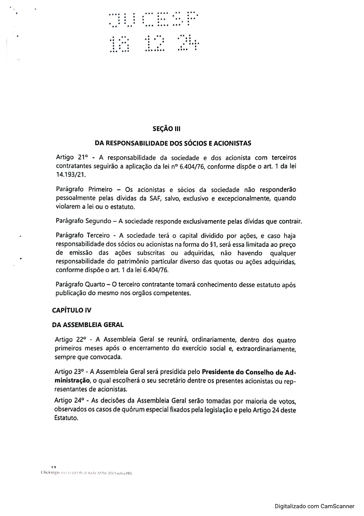 Em Assembleia Geral realizada em 10/08/2022, foi aprovada a transformação do TANABI ESPORTE CLUBE em Sociedade Anônima do Futebol – SAF, nos termos da Lei nº 14.193/2021, bem como a aprovação do Estatuto Social e a eleição da Diretoria, com mandato conforme o Estatuto Social.