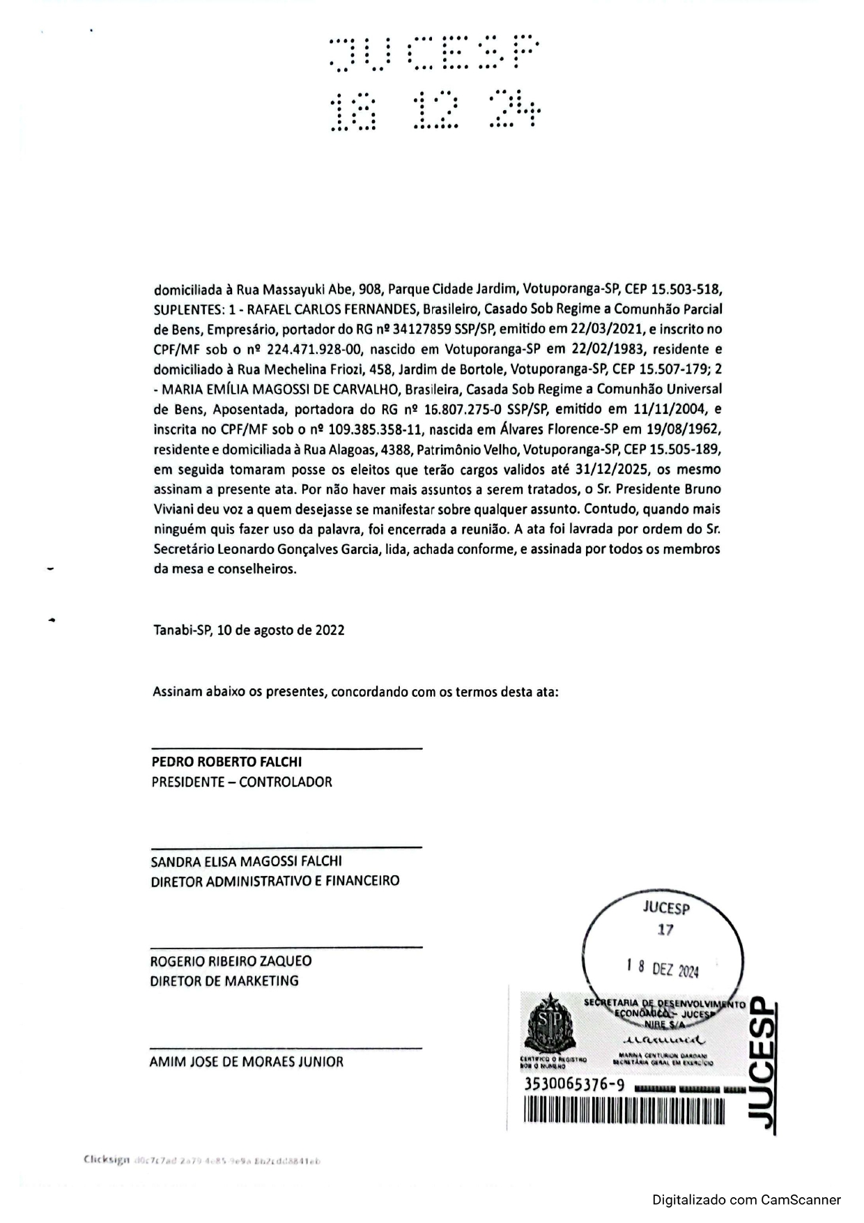 O inteiro teor da ata e do Estatuto Social encontra-se disponível no Sistema Integrado da Junta Comercial do Estado de São Paulo – JUCESP.