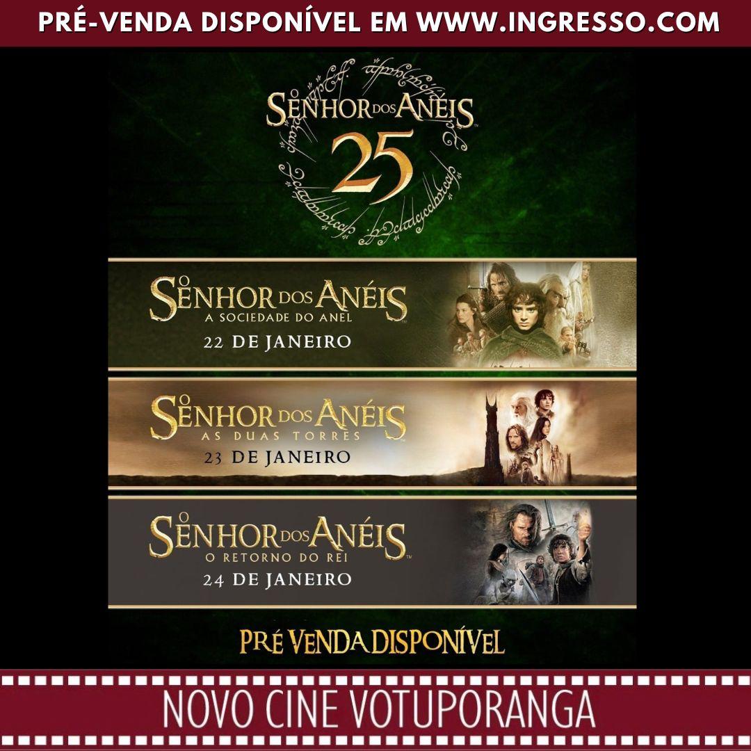 A trilogia original de “O Senhor dos Anéis” volta aos cinemas brasileiros neste mês em versões estendidas, celebrando os 25 anos de “A Sociedade do Anel”. A programação especial propõe uma imersão completa na “Terra-média” (cenário principal da obra), com a exibição de um filme por dia — hoje (22), amanhã (23) e sábado (24) — em sessão única às 19h.