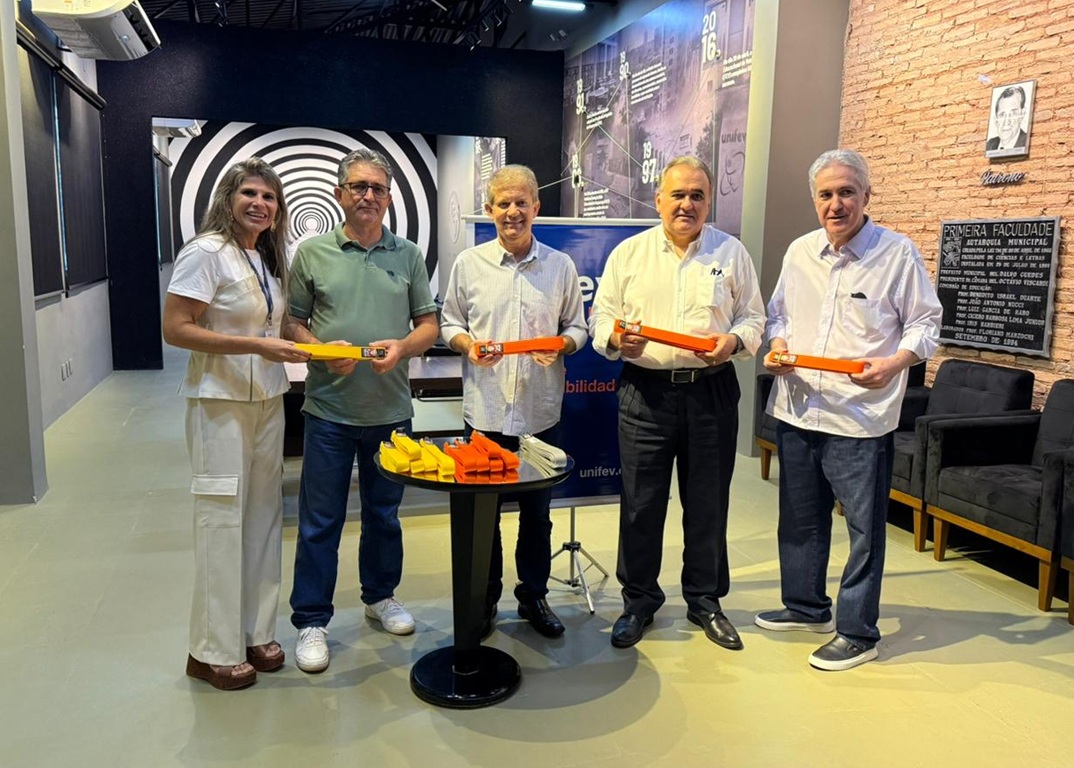 Participaram do momento o diretor-presidente da Fundação Educacional de Votuporanga (FEV), Celso Penha Vasconcelos; o reitor da Unifev, Prof. Dr. Osvaldo Gastaldon; o pró-reitor acadêmico, Prof. Me. Walter Sampaio Filho; a coordenadora do Núcleo de Responsabilidade Social, Profa. Ma. Vanessa Mara Pagliarani Zeitune; e o gestor administrativo da entidade, Marcos Graciano.