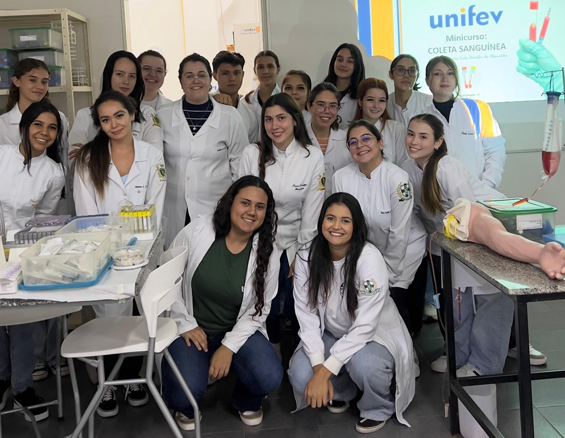 A Unifev, por meio dos cursos de Biomedicina e Farmácia, realizou no último sábado (8/11) um treinamento intensivo de oito horas em coleta de sangue venoso. A capacitação foi ministrada no Laboratório de Análises Clínicas, localizado no câmpus Centro.
