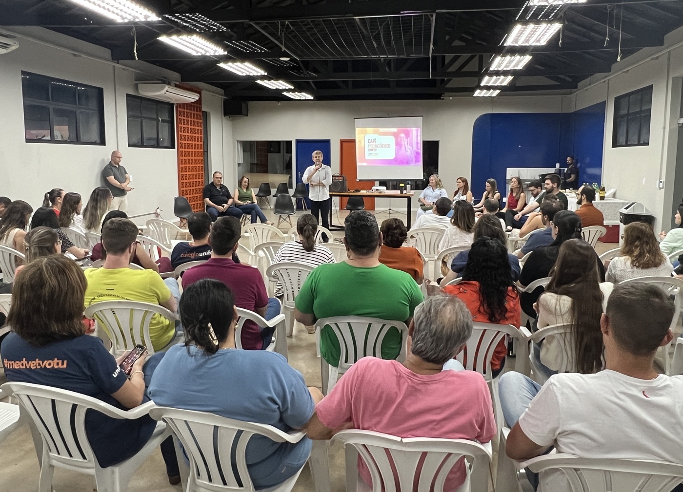Com o objetivo de contribuir para a troca de experiências pedagógicas, reforçar a cultura institucional de colaboração e aprendizagem e incentivar a formação continuada, a Unifev realizou na noite de quarta-feira (10/12) a capacitação docente “Café Pedagógico – Diálogos sobre Educação”.
