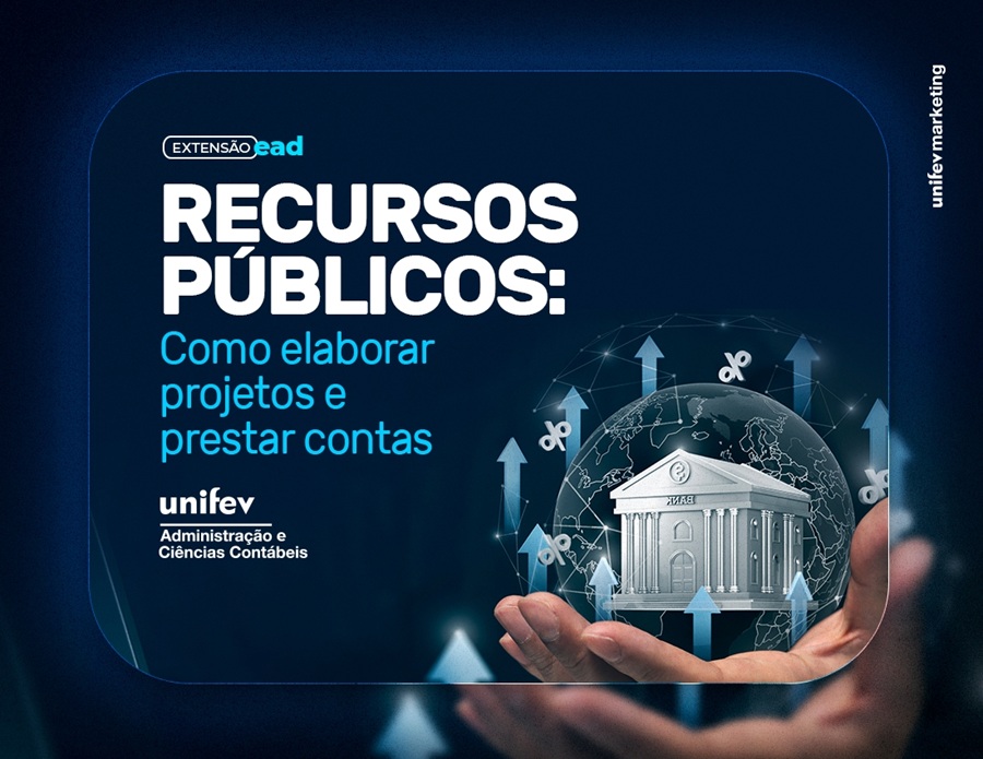 A Unifev, por meio das graduações em Administração e Ciências Contábeis, está com inscrições abertas para o curso de extensão “Recursos Públicos: como elaborar projetos e prestar contas”. O treinamento será ministrado on-line, pela especialista Carolina da S. Melo Moço Matsuomoto, no dia 27 de outubro, das 19h às 22h, via plataforma Teams.