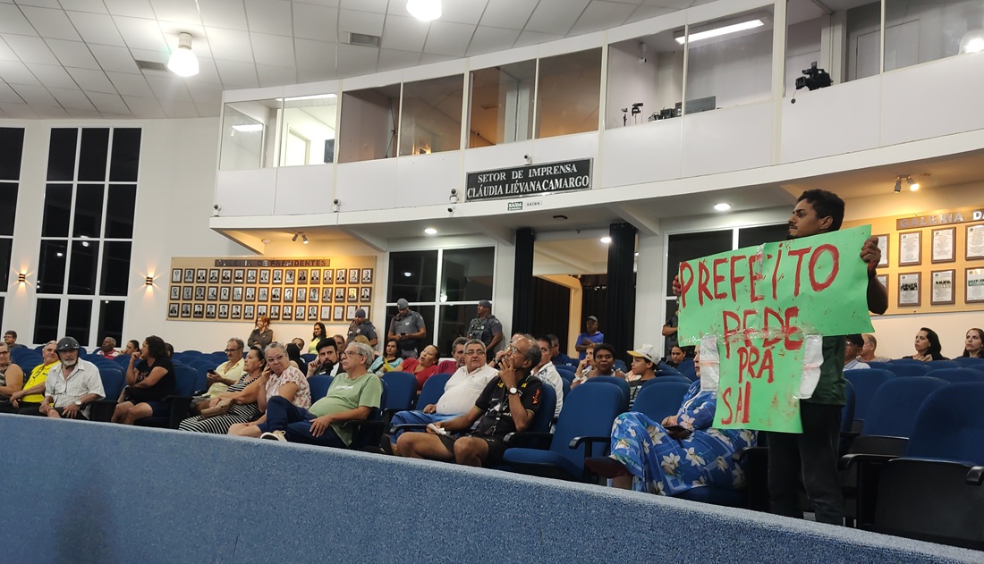 Nos momentos de maior ímpeto, o presidente em exercício, vereador Serginho da Farmácia (PP), pediu calma aos manifestantes para garantir a palavra aos colegas de Câmara.