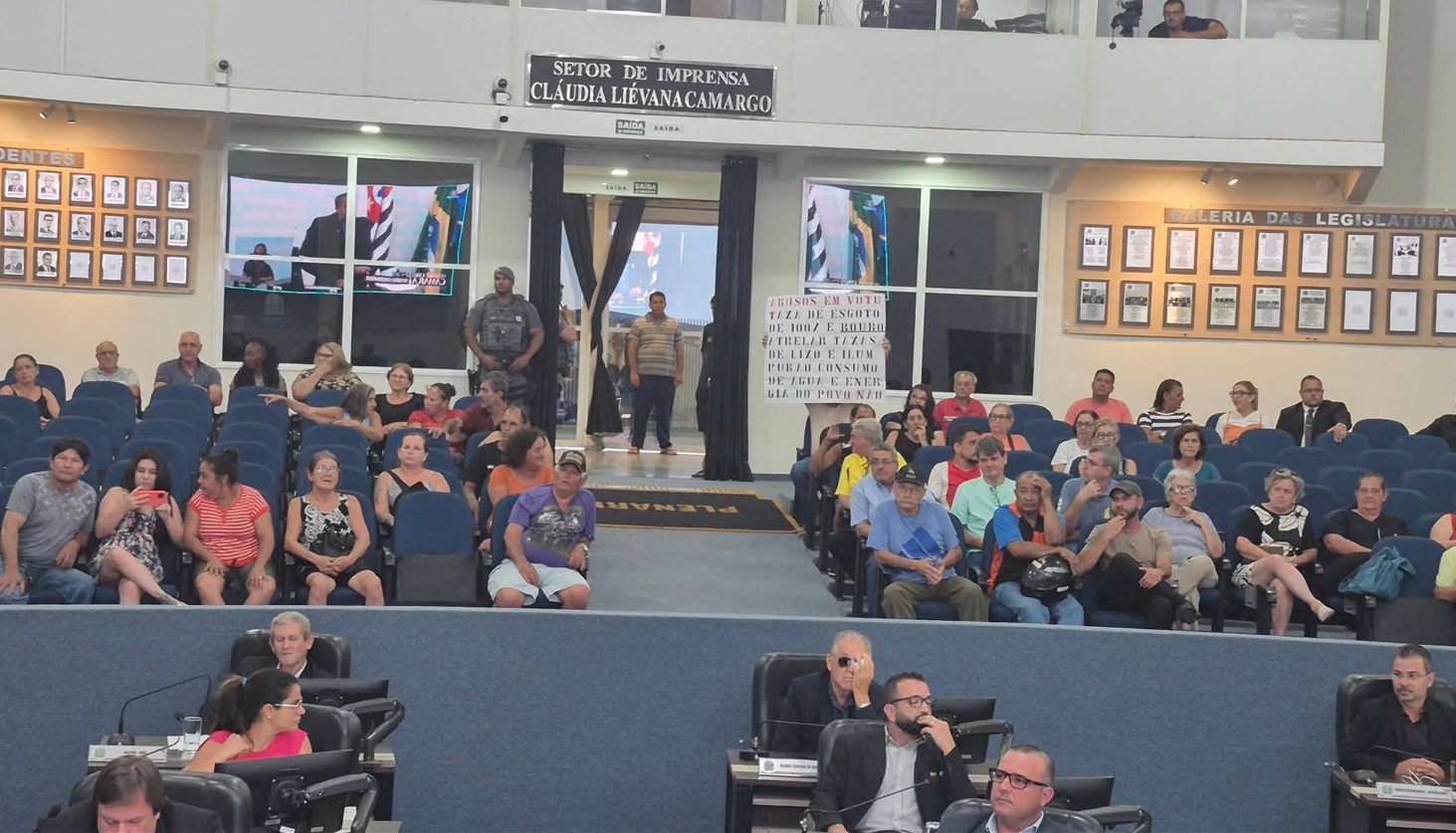 Conforme antecipado pelo Diário, dezenas de votuporanguenses marcaram presença nas galerias da Câmara Municipal, nesta segunda-feira (26.jan), durante a 1ª sessão ordinária da Casa de Leis em 2026, para protestar contra o aumento do valor cobrado na conta de água.